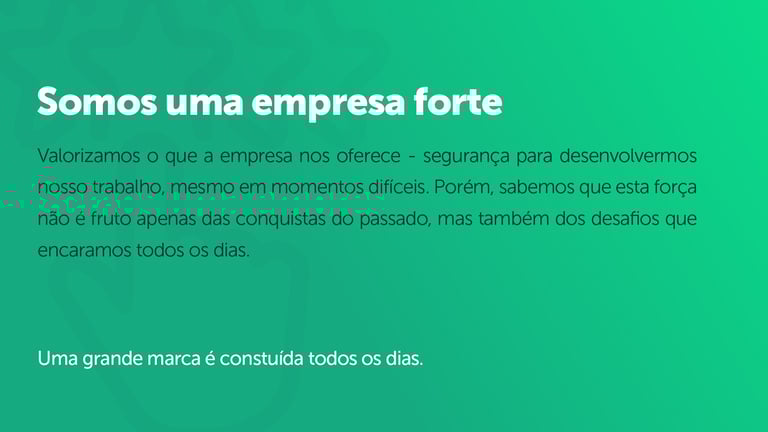 » Focus Groups e Entrevistas com lideranças: Conversamos com nossos colaboradores, em três rodadas de Focus Group, e com os líderes, através de entrevistas, identificando os atributos que fariam parte de nossa marca empregadora..