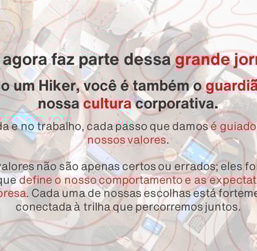 Foi assim que nasceu o conceito dos Hikers, ou “caminhantes”, que simbolizam os colaboradores da empresa em suas jornadas profissionais, sempre explorando novos territórios e superando desafios.