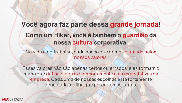 Essa abordagem não apenas inspira, mas também reforça a cultura de profissionalismo e evolução contínua que a Hikvision busca proporcionar aos seus colaboradores.